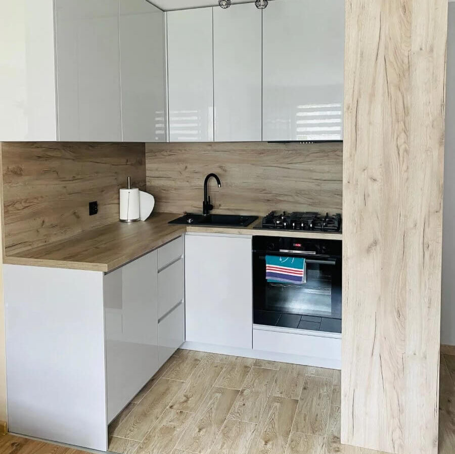 Wybór materiałów i designu mebli kuchennych odgrywa kluczową rolę w minimalistycznej estetyce. Jedną z głównych cech w tej tematyce jest nadanie wizualnej lekkości wnętrzu. Proste, geometryczne linie, gładkie fronty bez uchwytów, jednolite powierzanie oraz minimalna ilość dekoracji stworzą wrażenie porządku i harmonii. Przy tworzeniu kuchni na zamówienie najczęściej wybieranymi kolorami są biel, szarości, beże czy czerń. Również naturalne materiały, takie jak drewno, kamień czy szkło idealnie sprawdzą się do nadania wnętrzu ciepła, elegancji oraz charakteru. Także odpowiedni dobór oświetlenia, czy to punktowe pod szafkami, taśmy świetlne lub światło ukryte w zabudowie dodatkowo podkreślą prostą formę mebli. Oczywiście w minimalizmie kierujemy się zasadą: mniej znaczy więcej. Zamiast eksponować liczne ozdoby czy nakrycia, warto postawić na kilka dobrze dobranych detali, np.: stylowy kran, ceramika lub szkło w prostych formach, wyeksponowany fragment naturalnego drewna, roślina doniczkowa czy też obraz lub plakat w neutralnych barwach.