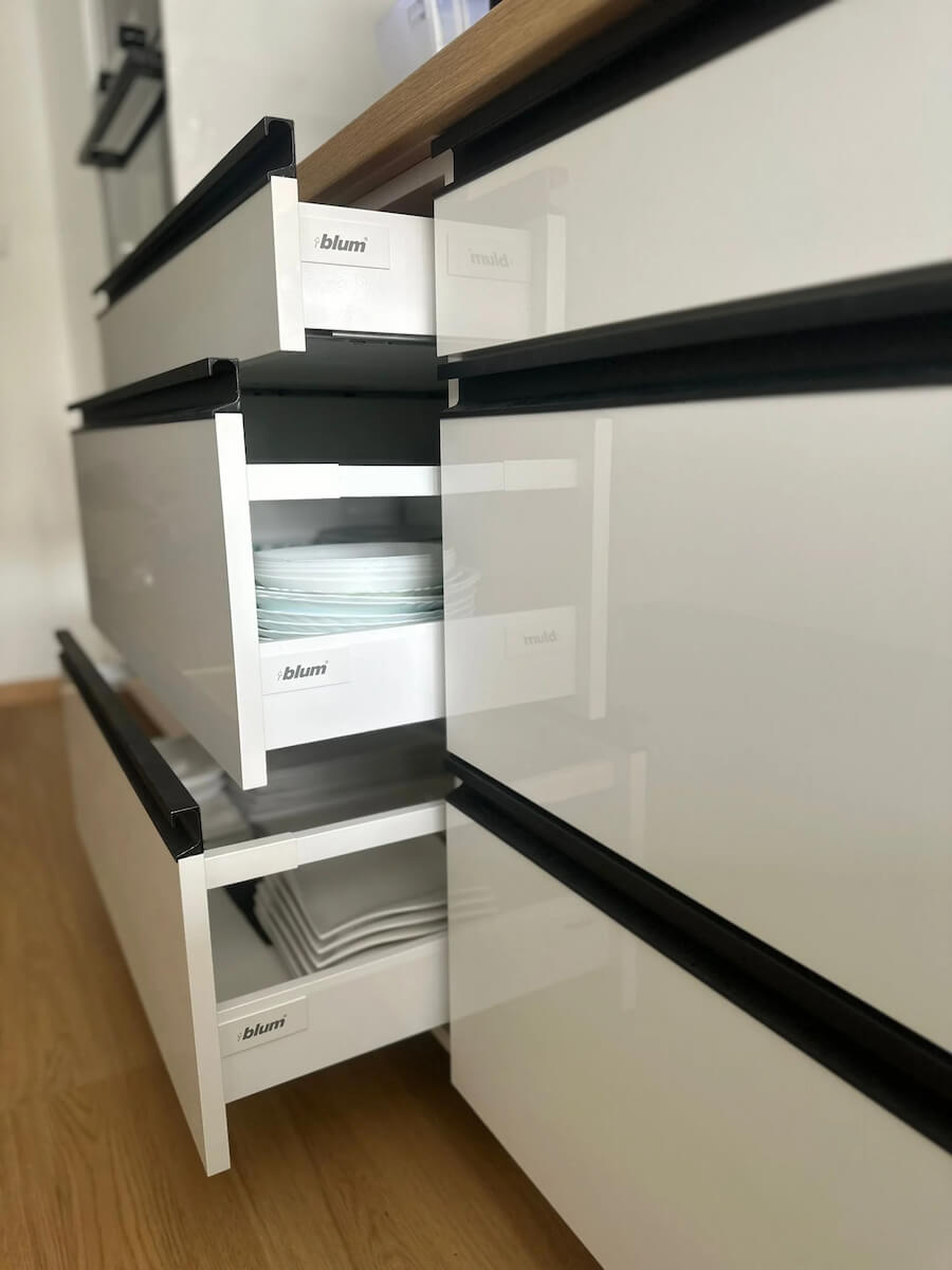 Kluczowym aspektem w kuchni jest odpowiednia organizacja przestrzeni oraz przechowywania przedmiotów. Dzięki dobrze zaprojektowanym nowoczesnym systemom szuflad, szafek czy organizerów w meblach kuchennych na zamówienie nie tracimy czasu na zbędne szukanie potrzebnych rzeczy. Dobra organizacja również pozwala nam zapanować nad kuchennym chaosem, utrzymywać porządek oraz efektywnie zarządzać przestrzenią niezależnie od tego czy dysponujemy dużą kuchnią, czy niewielkim aneksem. Wysuwane kosze, ciche domykanie, półki typu cargo, szuflady z podziałkami to nie jedyne rozwiązania, które ułatwiają codzienne funkcjonowanie. Minimalizm również zaczyna się od świadomych wyborów. Warto przemyśleć, ile tak naprawdę potrzebujemy rzeczy do pracy. Nadmierne ilości zastawy stołowej, garnków czy sprzętu może tylko zagracać kuchnię, a nie pomagać nam w codziennych czynnościach. Praktyka minimalizmu może nam zdecydowanie poprawić komfort pracy, ale również stworzy nam estetyczne i ciepłe wnętrze.